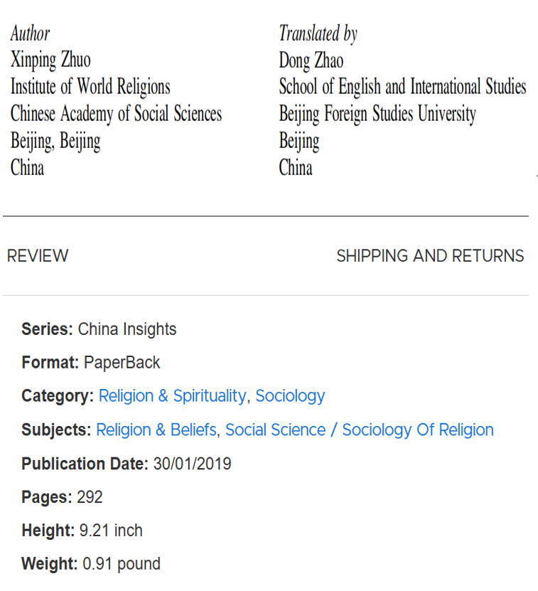 专业教材20余部,发表国际期刊英文论文近20篇。现主持社科基金中华学术外译项目《时间与东亚古代世界》(2023),独立完成社科基金中华学术外译项目《中国人的宗教信仰》(2016)、北京市教委《中国佛教文化英文课程建设》、教育部国际司《去宗教极端化国际经验及我国的对策》、教育部国际司《加拿大民族宗教政策对我国的启示》等项目。社会兼职包括:Taylor & Francis 出版社审稿专家(佛教领域);法国学术期刊 Macrotheme Review编委;美国学术期刊 Diaspora, Indigenous, and Minority Education审稿专家;首都高端智库专家(2017-);中国佛学研究会(香港)会员、全国英国文学研究会会员等。