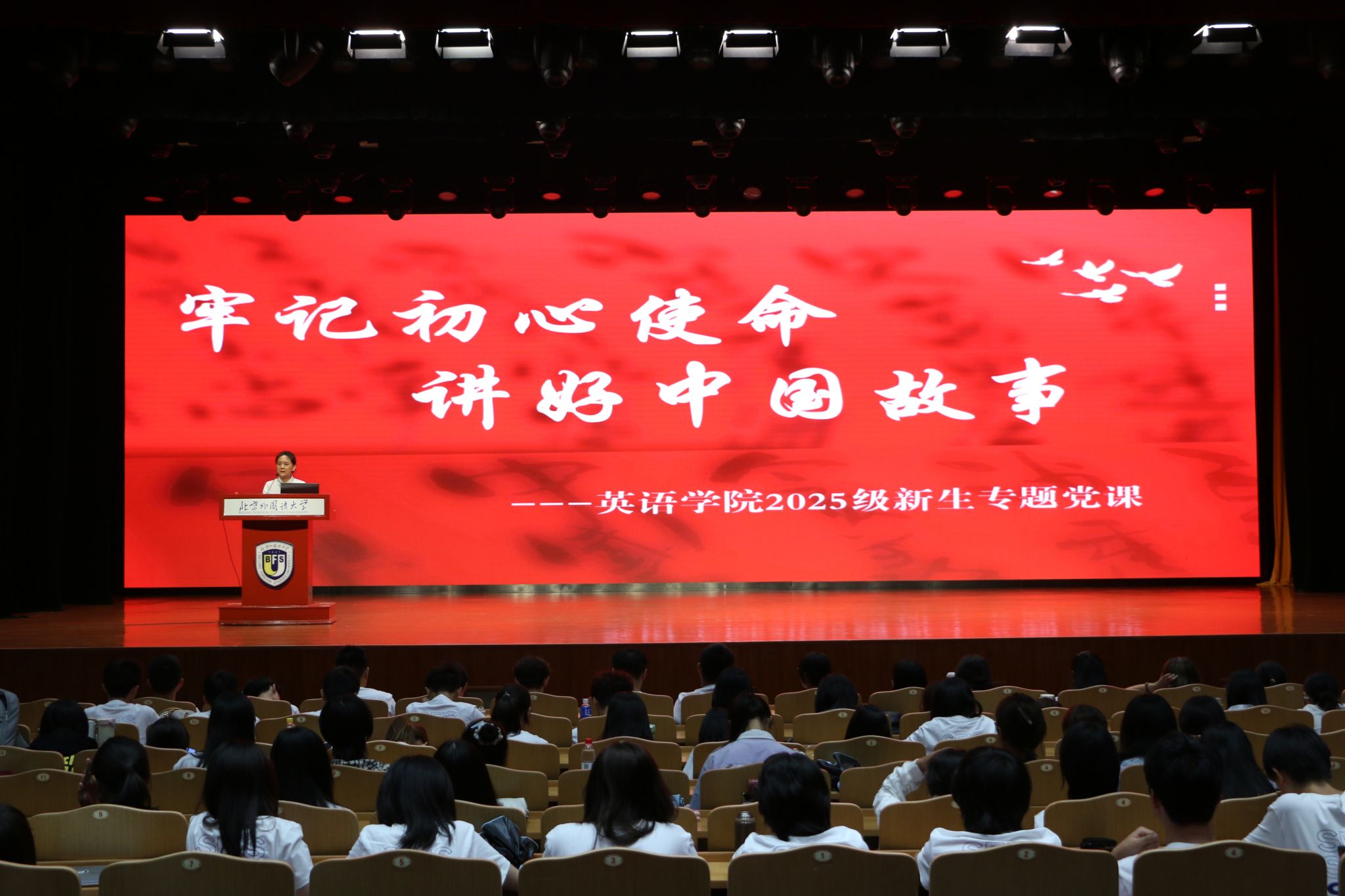 党总支书记殷悦以“牢记初心使命,讲好中国故事”为题,为全体2025级本科生及研究生新生讲授专题党课。