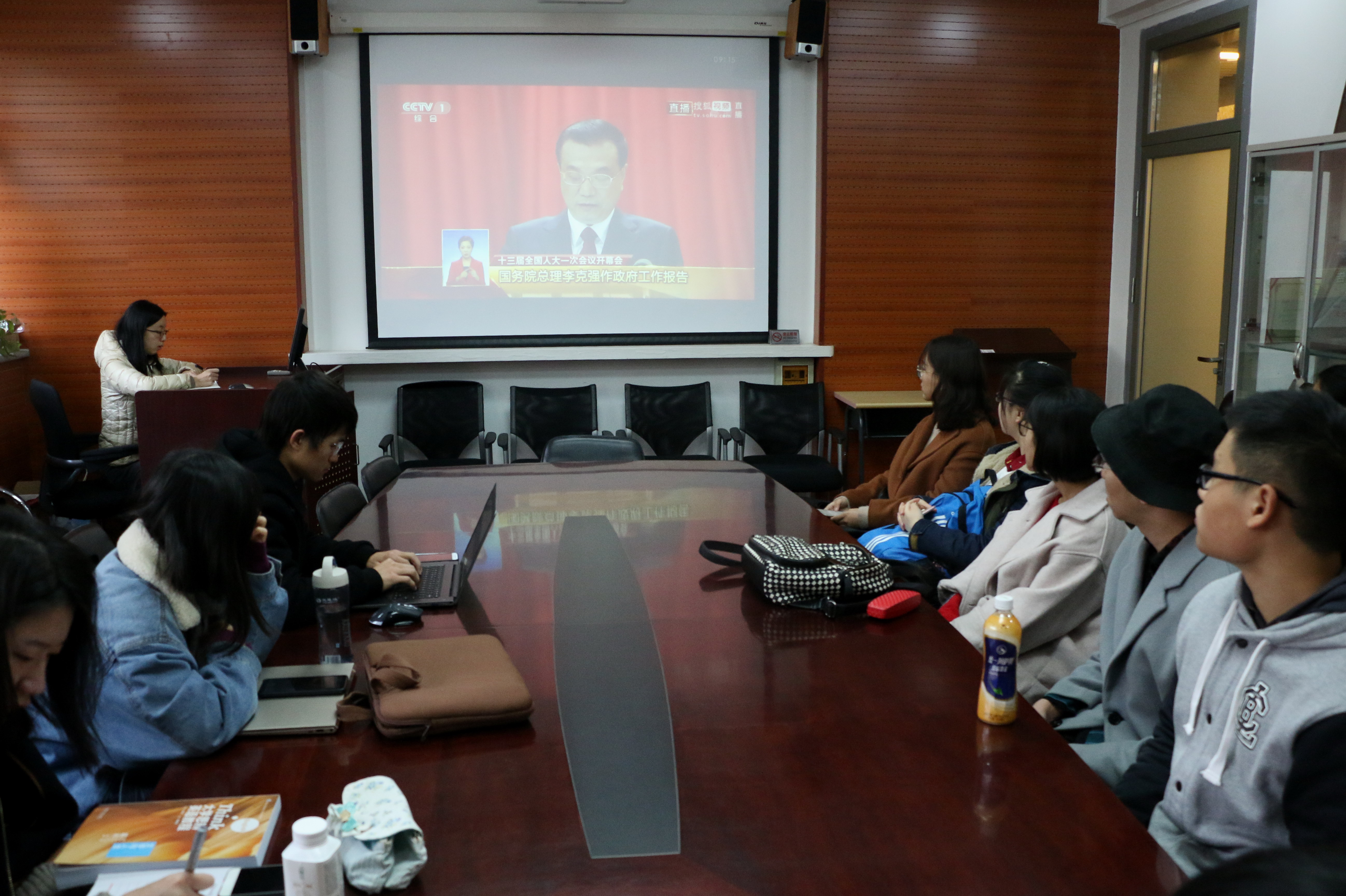 ——3月5日上午,第十三届全国人大一次会议在北京开幕。国务院总理李克强代表国务院,向大会报告过去五年政府工作李克强总理作政府工作报告,对今年工作提出建议。足球比分365 组织师生在115会议室现场收看,党总支书记路兴、辅导员及部分学生团支部书记、学生骨干、入党积极分子等参会学习。