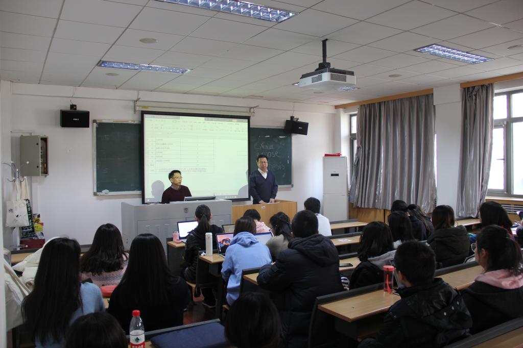 417教室召开2019年大学生创新创业训练计划项目申报说明会。党总支书记路兴、副院长谢韬、辅导员于承杰以及有意申报项目的学生30余人参加。