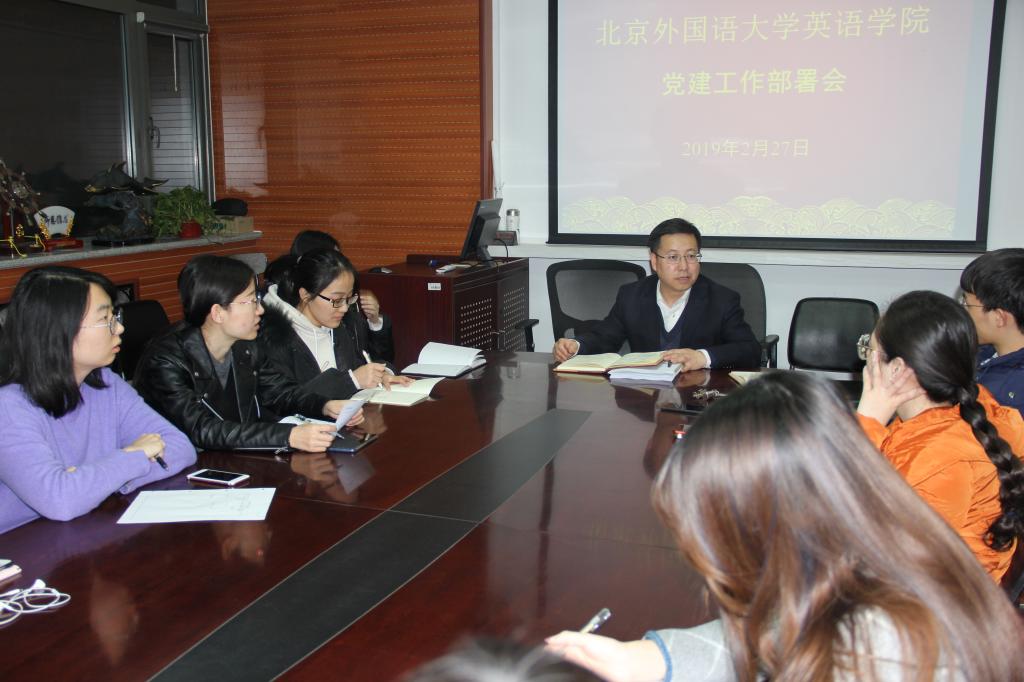 新学期学生党建工作提出了相关要求:1.重视并加强党员教育学习,通过“学习强国”APP的使用,提升党员自我学习、随时学习、随处学习的自觉性。2.布置落实《中共北京外国语大学关于召开2018年度基层党组织组织生活会和开展民主评议党员的通知》的工作要求。3.强调重视并提前做好新学期入党积极分子培训班、发展对象培训班人员选拔推荐工作。4.梳理本学期发展计划及预备党员转正时间,对于已经发展为预备党员的同志,支部书记要及时填写预备党员考察登记表。5.强调新发展党员务必在每月10日前系统报增。6.规范党支部书记换届时间及党费收缴周期。