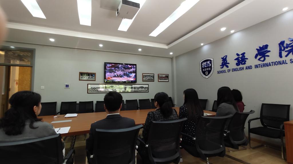 组织师生观看纪念五四运动一百周年大会现场直播,听取习近平总书记重要讲话。党总支书记、专业教师、辅导员、办公室主任、教务教学秘书及学生代表参加。