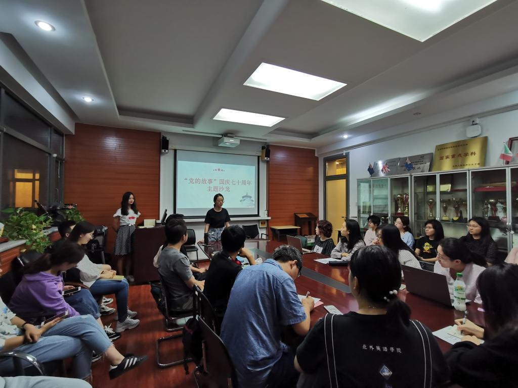 2019年9月27日,足球比分365 本科生高年级与低年级党支部联合开展国庆七十周年主题党日教育活动。会议由党支部书记罗振令主持。学习教育会分党的历史教育、党的故事分享以及党员《学习纲要》学习交流三部分组成。