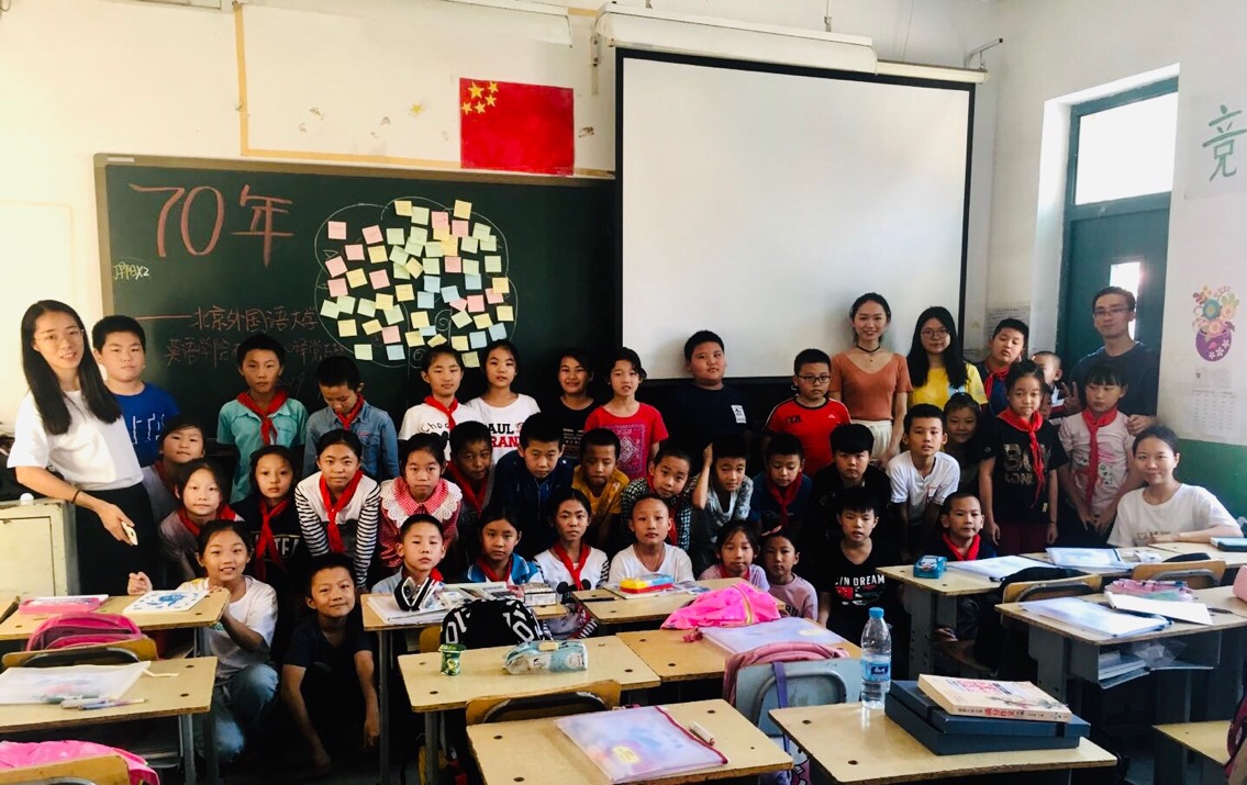研究生MTI口译党支部党员和入党积极分子一同前往北京市海淀区行知实验学校这所农名工子女小学,为小朋友送去书籍、文具,教简单的英文,送去大哥哥、大姐姐的温暖,并一起欢唱《我和我的祖国》,希望小朋友能更深刻体会祖国70年来风雨兼程的奋斗发展,更深刻感受祖国的繁荣伟大!也希望口译支部同学结合自身的专业,为中国梦的实现贡献一份力量,为国家民族复兴的实现注入新动力。当日,研究生MTI口译党支部的同学为小朋友们赠送文具、书籍等,一同合唱《我和我的祖国》。