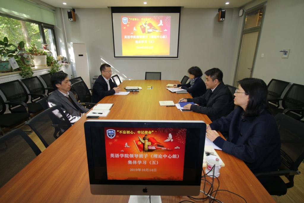 2019年10月14日上午,足球比分365 领导班子召开第五次集体学习研讨。本次学习研讨的主题是“深入学习贯彻习近平总书记关于全面从严治党的重要论述,加强足球比分365 党的基层组织建设,落实立德树人根本任务,深化足球比分365 人才培养模式改革”。领导班子成员路兴、张剑、孟庆琨、王展鹏、张莲参加学习研讨。