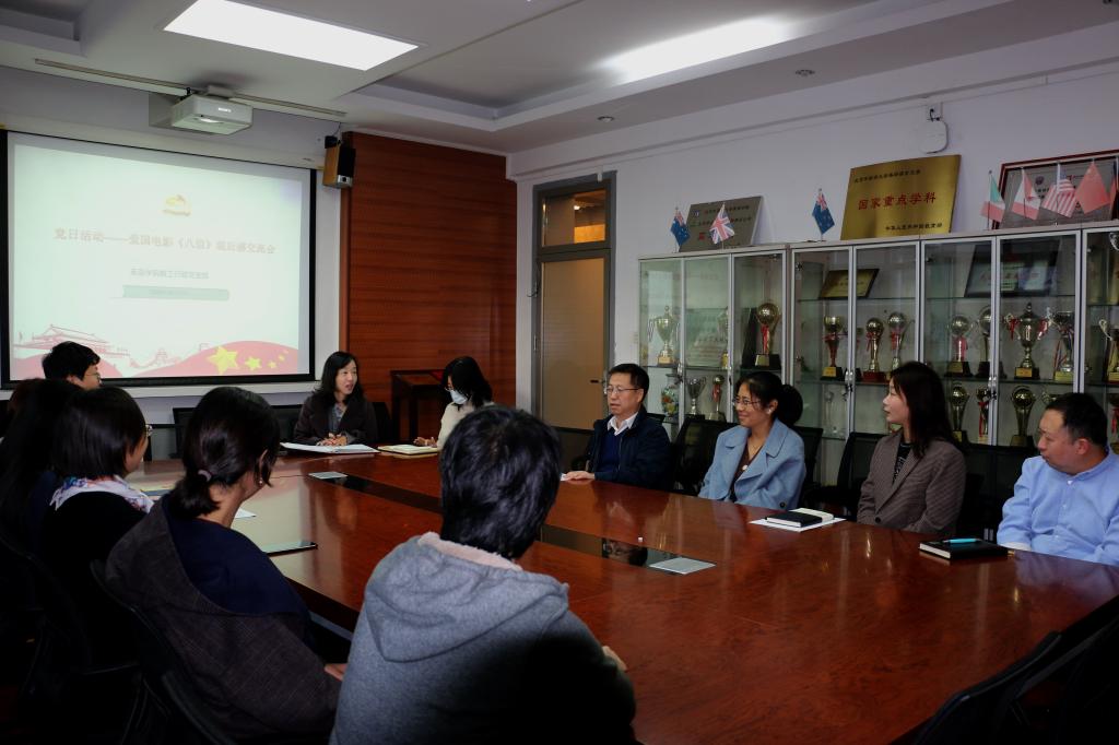 为进一步加强规范支部党员政治生活,强化教育管理,深入推进“不忘初心、牢记使命”主题教育的开展,重温抗战历史,激发大家的爱国主义热情,足球比分365 教工行政党支部于10月21日组织开展党员观影活动,选择爱国教育影片《八佰》作为学习内容。并于10月22日在足球比分365 楼115会议室召开观后感交流党课活动。