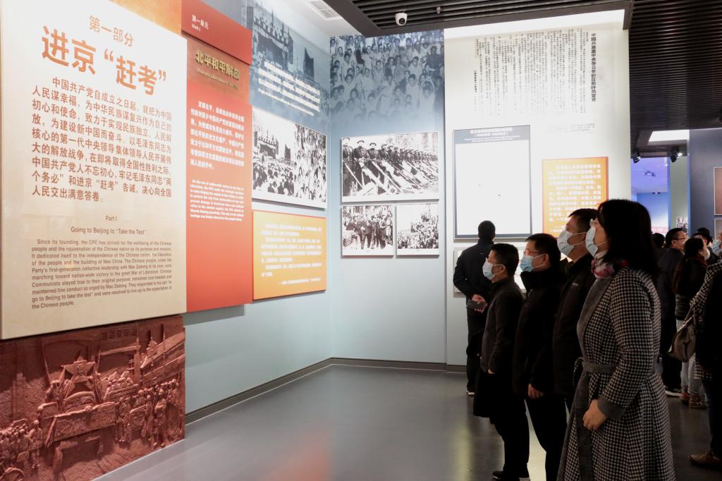 参加主题党日活动的教职工党员首先前往香山革命纪念馆参观学习,重温我们党解放全中国、筹建新中国的光辉历史。香山革命纪念馆中有数千件展品、图片和一段段珍贵的影像资料,全面呈现中共中央在北京香山时期波澜壮阔的革命历史,并设有《为新中国奠基——中共中央在香山》主题展览。大家在馆内依次观看了“进京赶考”、“进驻香山”、“继续指挥解放全中国”、“新中国筹建”、“不忘初心、牢记使命、永远奋斗”五个部分的内容。通过聆听展馆工作人员的细致讲解,观看一件件珍贵的历史影像与画卷,深切缅怀老一辈无产阶级革命家的丰功伟绩。