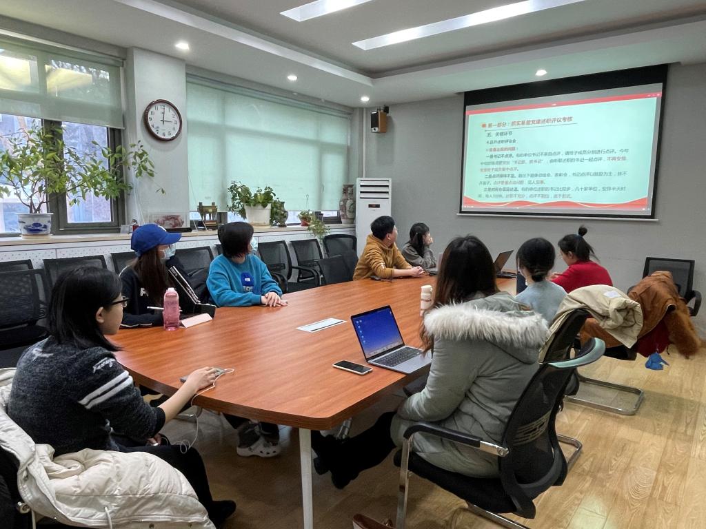 111会议室集体收看“基层党建述职评议考核及基层党组织党建活动经费管理使用”的线上培训课程。