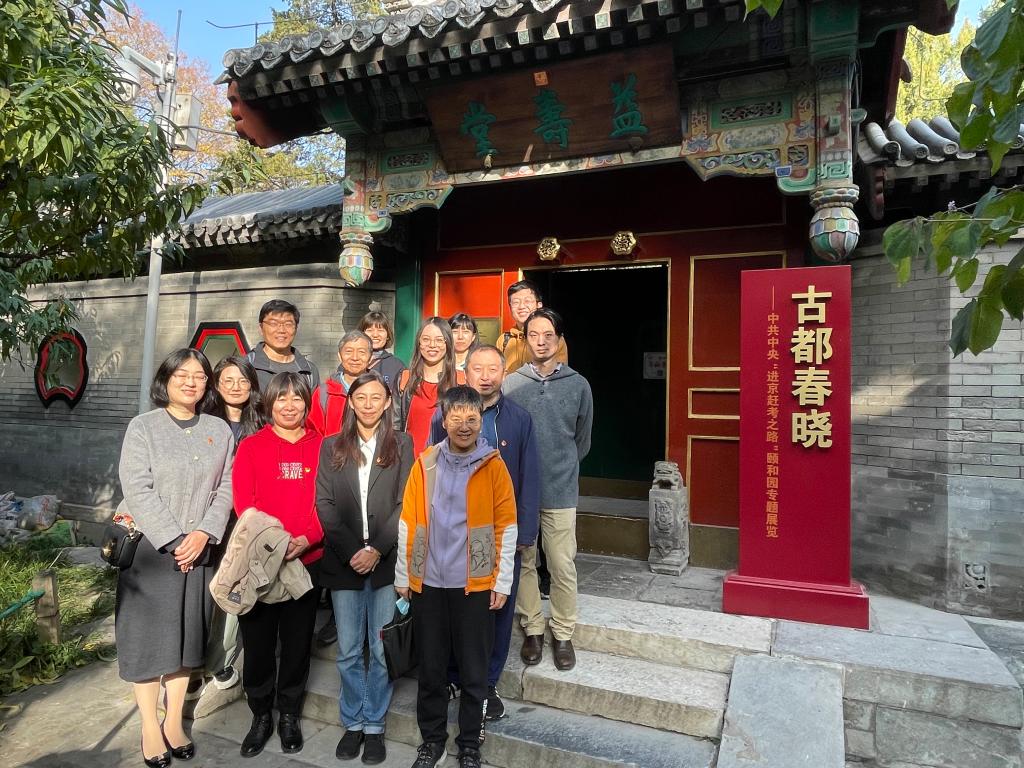 党总支理论中心组成员、研究生党支部指导教师一行首先参观了“古都春晓——中共中央‘进京赶考之路’颐和园专题展览”。本次展览是为了纪念1949年3月23日毛泽东率领中共中央机关离开西柏坡踏上“进京赶考之路”的重要历史事件。在颐和园,毛泽东曾与众多民主人士进行了面对面的交流,开启了协商建国、共创伟业的新纪元,书写了进京“赶考”的重要一笔。通过参观,大家进一步深刻认识到,要认真学习贯彻习近平总书记关于做好新时代党的统一战线工作的重要思想,进一步加强党外知识分子思想政治引领,凝聚政治共识和前进力量,推动学校事业发展。