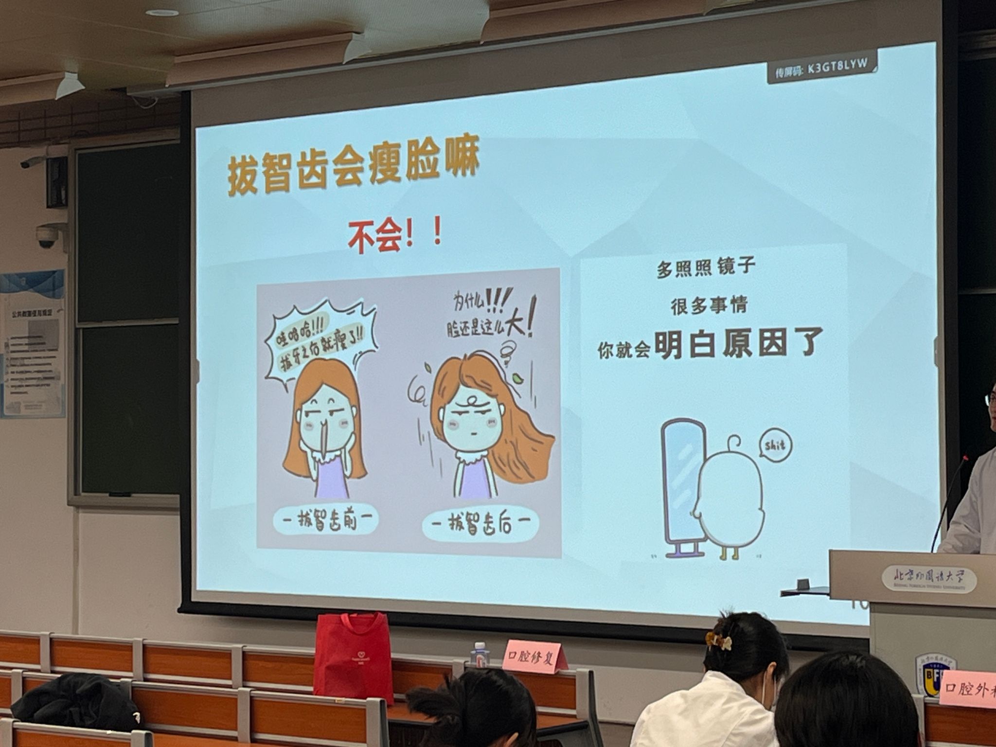 同学分别从口腔清洁与护理、牙齿健康美白、口腔正畸、智齿及口腔内科知识等五个方面进行科普讲座。
