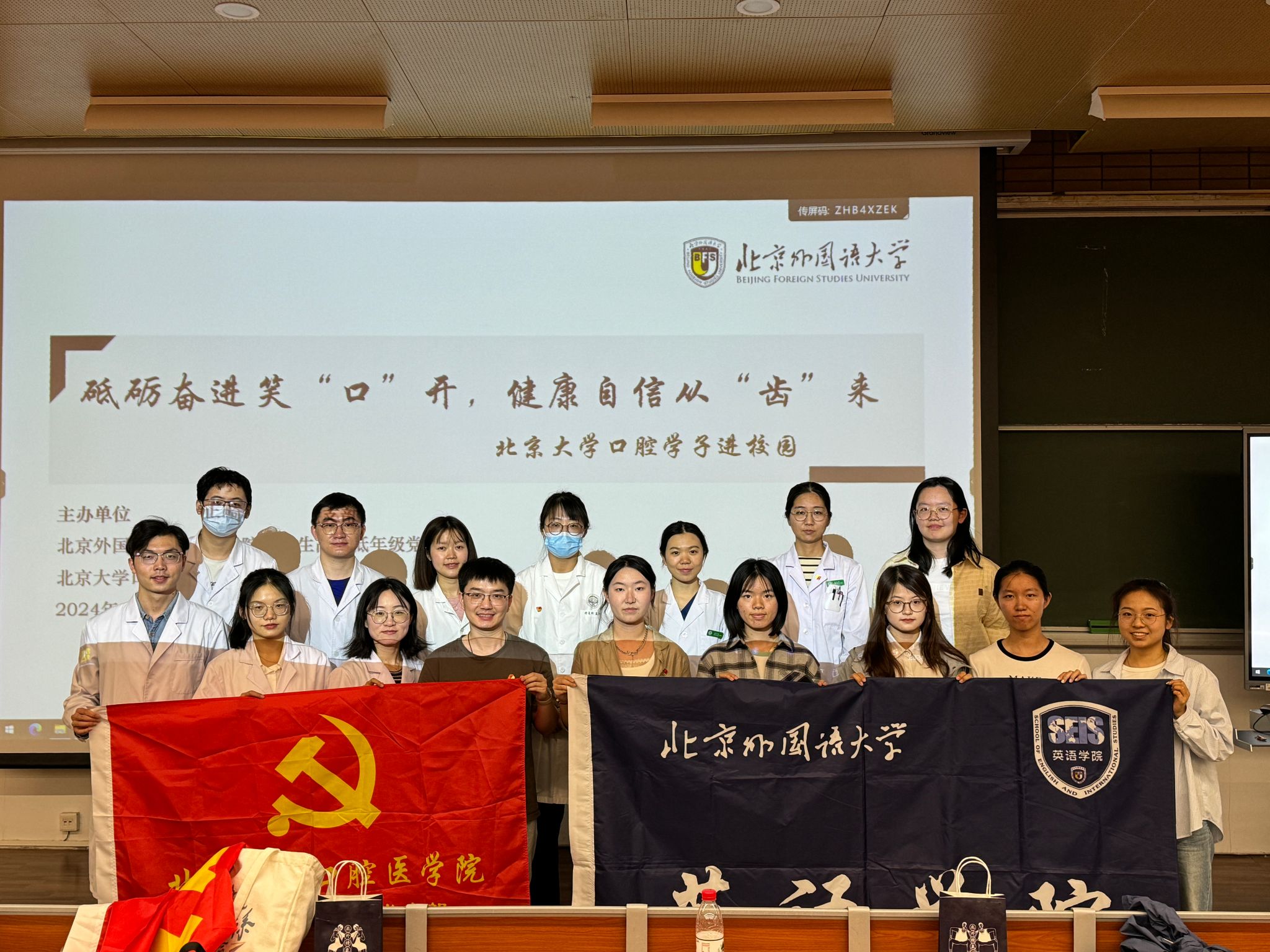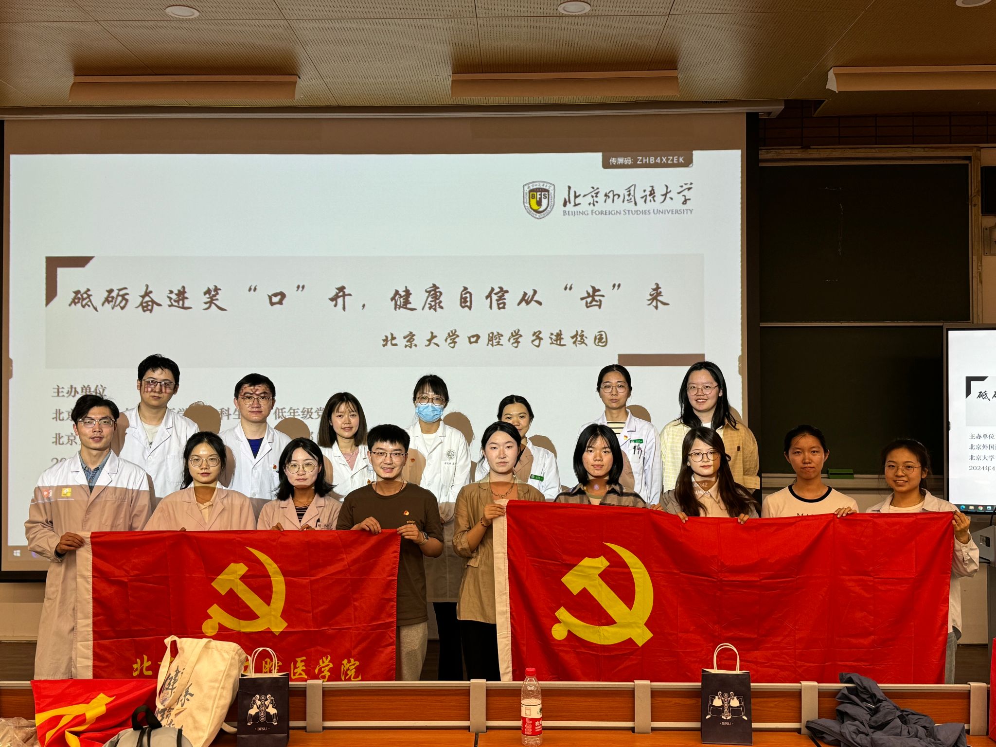 口腔正畸研究生党支部联合举办的“砥砺奋进‘笑’口开,健康自信从‘齿’来”——北京大学口腔学子进校园活动在逸夫楼二阶教室举行。