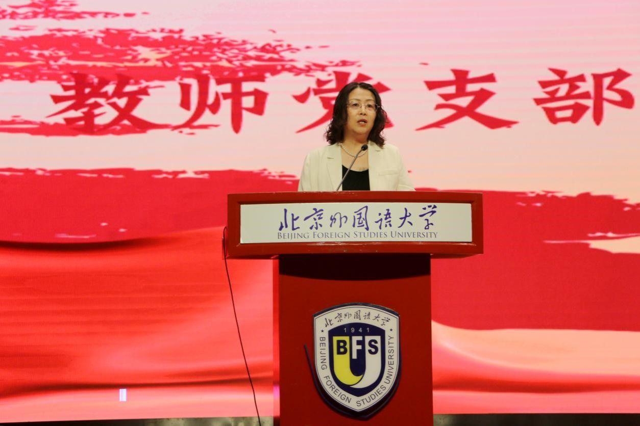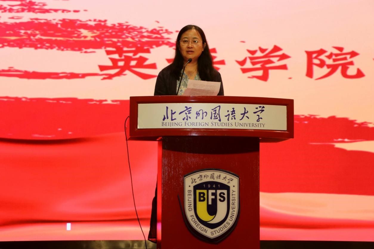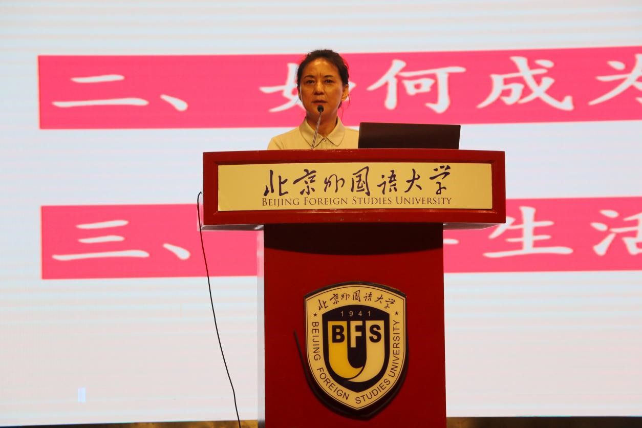 党总支书记殷悦进行新生党课教育,她回顾了近代中国的百年屈辱史,讲述了中国共产党的初心和使命、共产党人的精神谱系、始终坚持以人民为中心以及勇于自我革命的品格。希望同学们传承北外红色基因,努力成为有家国情怀、有全球视野、有专业本领的复合型人才,成为勇担国家使命的新时代青年,为第二个百年奋斗目标中华民族伟大复兴贡献自己的力量。