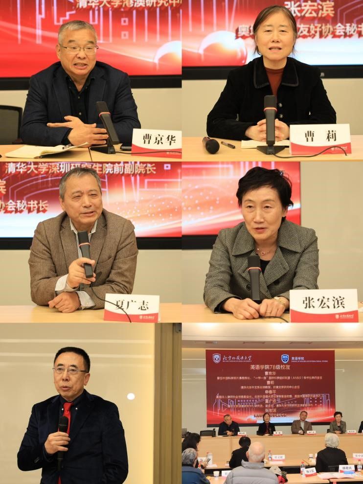 78级校友曹京华、曹莉、申春平、夏广志、张宏滨共同座谈,曹京华感恩北外语言教育让自己从翻译成长为国际科技合作推动者;曹莉感慨许国璋先生与王佐良先生等先辈铸就的学术传承;申春平难忘许国璋先生“多读书、读好书”的叮嘱;夏广志表示,是许国璋先生代表的北外治学精神与综合教育,赋予自己跨界发展成为高校外事骨干的底气;张宏滨则感念北外赋予的文化底蕴和语言能力,支撑自己在奥地利深耕30余年中外友好交流。他们感恩北外教育与先生精神指引,让他们在各自领域发光发热,认为先辈精神是英院荣光永续的核心。
