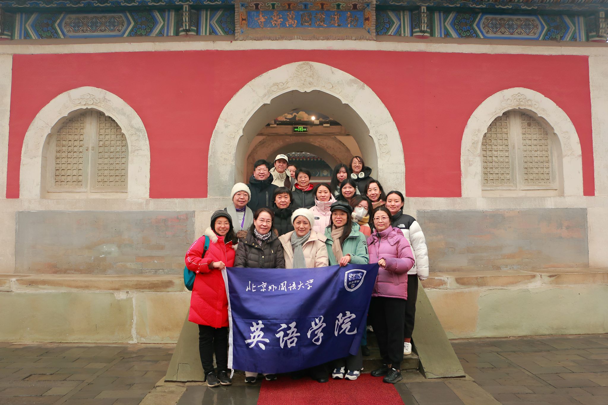 教职工们准时在万寿寺西门口集合,在飞檐斗拱、红墙绿树的映衬下合影留念。雨雪中的万寿寺更显古朴沉静,仿佛带人穿越时空,步入悠长的历史长廊。