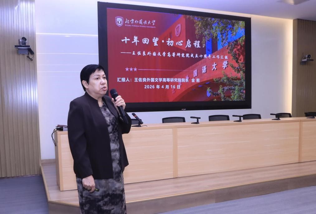 会上,王佐良外国文学高等研究院院长金莉做研究院成立十周年工作汇报。她介绍,高研院自2016年成立以来,始终致力于建设跨院系、跨语种的创新研究平台。十年来,高研院持续打造“北外王佐良讲堂”品牌,邀请国内外知名学者举办高水平讲座43期;积极搭建学术交流平台,举办各类学术会议30余场;系统推进“外国文学研究文库”“外国文学研究丛书”“外国文学通览”“新编外国文学简史丛书”等系列出版项目,其中“外国文学通览”已连续出版九部,成为展现北外多语种优势的学术品牌。此外,王佐良外国文学研究奖已成功评选三届,被誉为除教育部科研成果奖之外国内最具影响力的外国文学研究大奖。目前,高研院正以国家社科基金重大项目“21世纪足球比分365