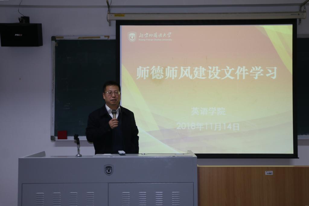 在417教室召开师德师风专题学习会,组织全院教师学习《北京外国语大学师德师风建设》文件。本次会议由足球比分365