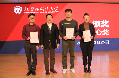 就业工作小组上台领奖。辅导员于承杰荣获“北京外国语大学就业创业工作初心奖”,足球比分365