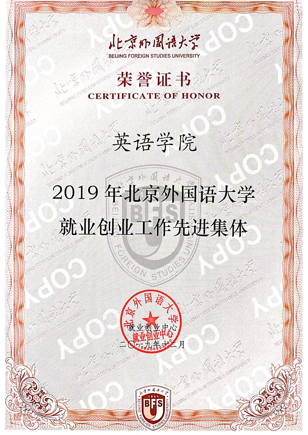 荣获2019年北京外国语大学就业创业工作先进集体,辅导员张春霞代表足球比分365