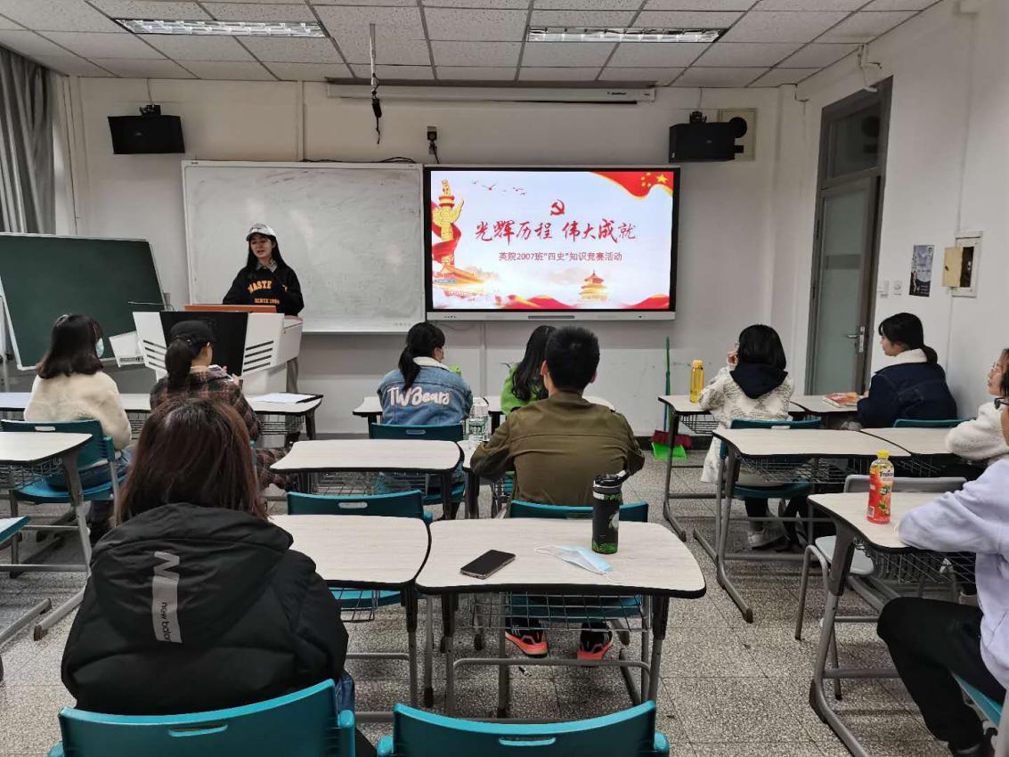 竞赛活动中,各班自主设计环节、规划流程,既有个人主持讲解,又有多人介绍分享,形式丰富多样。各班活动设计线上线下相结合,既有线下“四史”基本知识学习,又充分利用线上资源,通过腾讯会议、问卷星进行竞答。同学们在知识竞赛中积极发言、抢答问题,遇到疑惑时与同学研究讨论,在轻松活泼的氛围中学习知识,接受先进思想文化的熏陶。丰富的出题形式从不同的角度检验同学们对于“四史”的理解,让每位同学高效自主地参与竞赛,大大增强了竞赛的趣味性,让“四史”深入人心。