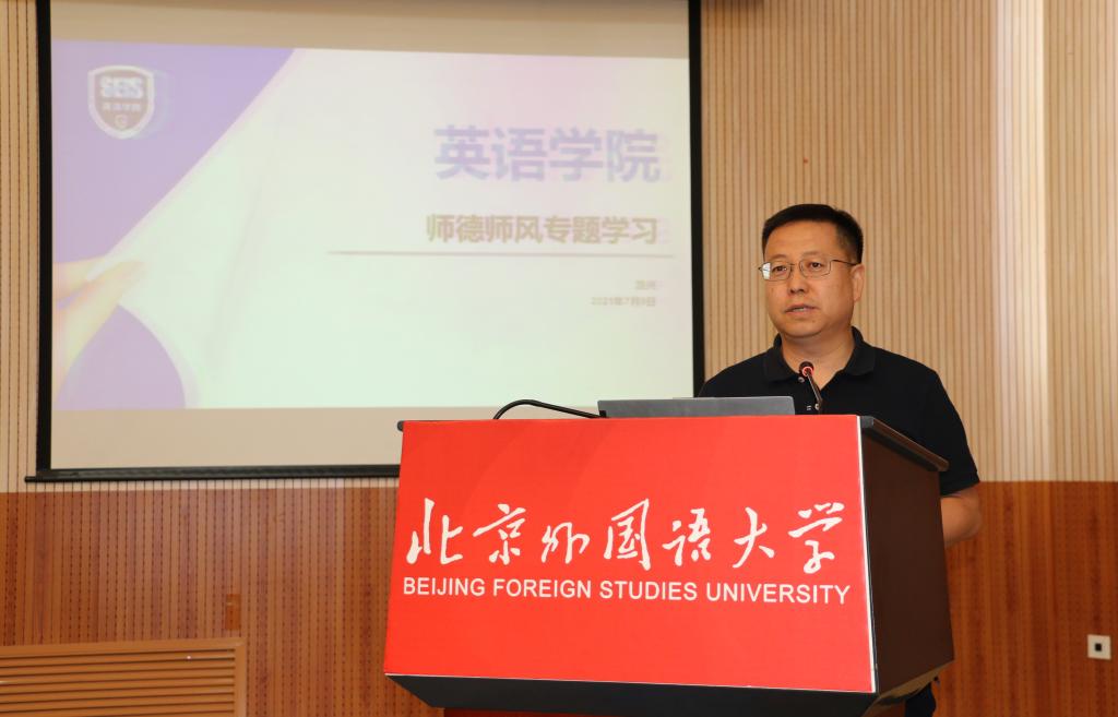 教职工师德专题学习教育进行部署。会前发放师德专题学习材料,会上分别就学习材料中《北京外国语大学教师职业道德规范》《北京外国语大学师德“一票否决制”实施细则》《北京外国语大学教师师德考核办法》《北京外国语大学开展教师集中理论学习实施办法》《新时代高校教师职业行为十项准则》《研究生导师指导行为准则》等重点文件进行了梳理和强调,鼓励大家会后认真学习并严格遵守相关准则、规定。