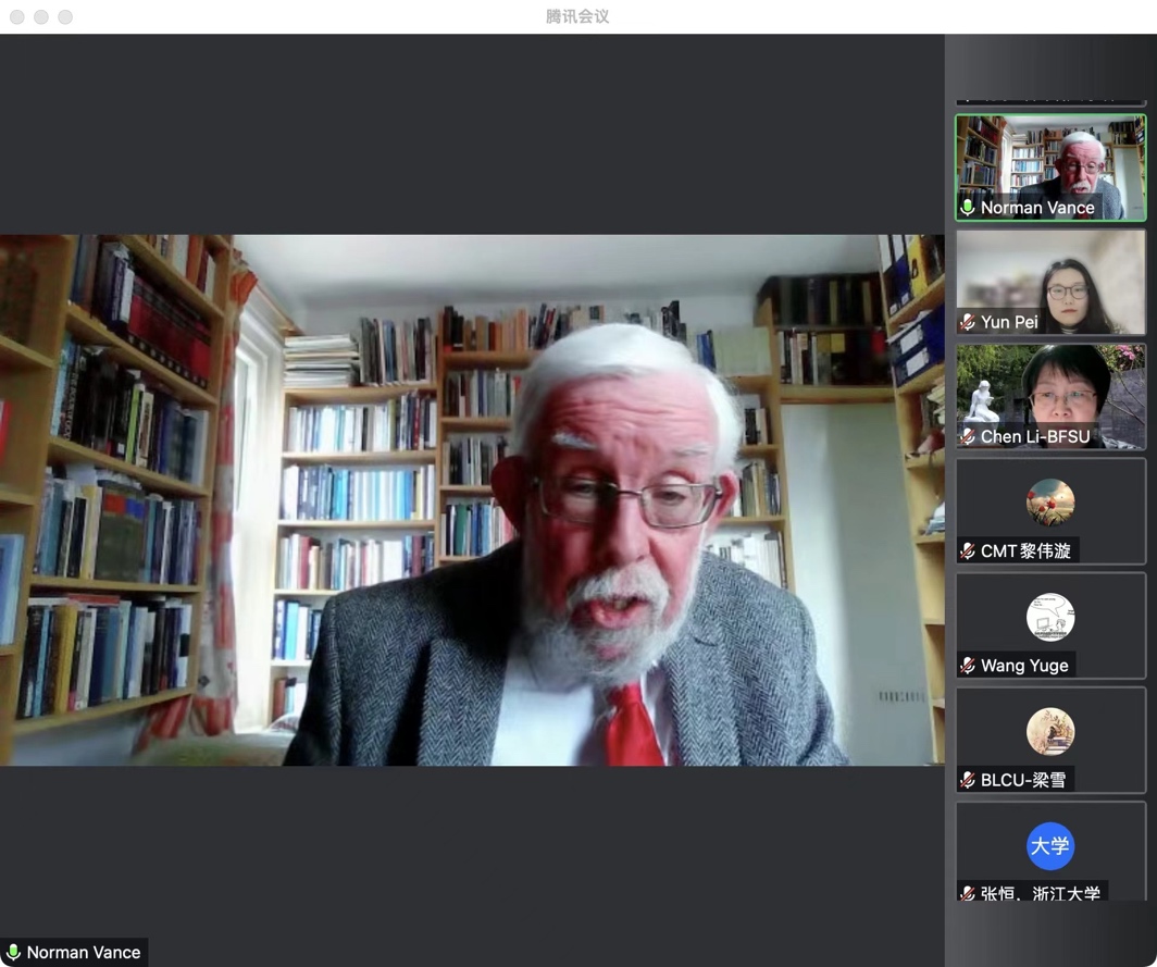 2022年11月10 日,英国苏塞克斯大学英国文学和思想史名誉教授、阿尔斯特大学客座教授、英国协会和皇家历史学会会员Norman Vance教授做客伊莎白足球比分365
