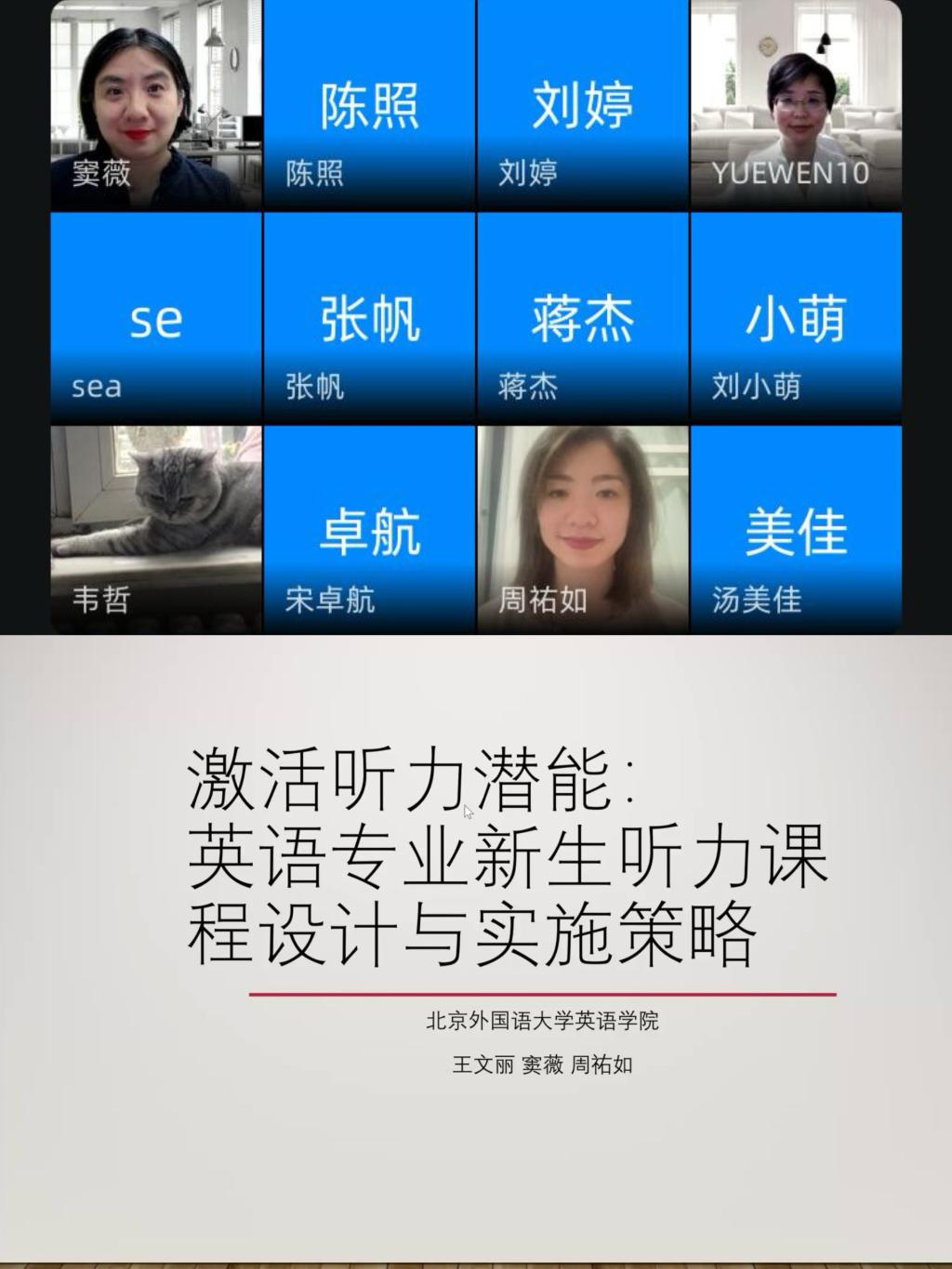 专业新生听力课程设计与实施策略”这一主题展开深入探讨。来自全国各高校2700多位教师线上参与了本次虚拟教研活动。