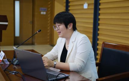 谢雅卿博士分别进行发言。高奋教授所作报告的题目为“论弗吉尼亚·伍尔夫《海浪》的形神合一”,运用中国诗学范畴“形神”观照弗吉尼亚·伍尔夫的小说《海浪》,认为后者展现出随物赋形、神制形从、气韵生动的写作手法,为作品增添了独特的艺术美感。黄重凤副教授发言的题目为“伍尔夫与天气书写”,认为天气在伍尔夫散文中与英国性的构建之间存在共生关系,不仅推动情节发展、塑造人物形象、突出人物心理和情感矛盾,还被赋予个性特征、道德功能与审美价值,揭示了人物的个人身份认同和情感认知。谢雅卿博士以“‘气韵生动’在英国现代主义运动中的跨文化旅行”为题,参照萨义德的“旅行理论”,分析英国现代主义者对“气韵生动”的话语重构如何影响他们的文学艺术创作实践。本组报告结束后,三位发言专家同与会师生就伍尔夫研究、东西方文化交流、生态文学等话题展开了热烈的讨论。