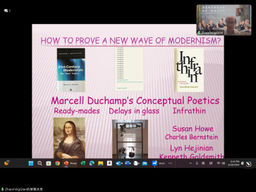外国文学研究所盛宁教授与新奥尔良大学钱兆明教授分别围绕“现代主义的诞生”话题进行主题报告。盛宁教授的报告以“刍议英美现代主义思潮、流派之缘起”为题,认为不能把文学简单地理解为某种意识形态理念的传声筒,而应重视文学自身独特的表现形式,以此窥见作者对于生活现实的独特理解,正确认识和评判文学流派的更迭。钱兆明教授的报告以“从帕洛夫所论杜尚先锋理念看斯奈德21世纪禅诗《牧溪的柿子》”为题,聚焦已故美国评论家帕洛夫发表的三部专著,探讨文学艺术创作与“虚薄”理念的内在联系,并以斯奈德21世纪禅诗《牧溪的柿子》为例,指出现代主义诗歌中相异比相似更为重要,而当代诗人与诗歌爱好者都要有敏锐的目力和听力,能够识别“虚薄”的差异。报告结束后,两位专家与现场参会学者就现代主义文学形式特点和“虚薄”理念进行了热烈的讨论。