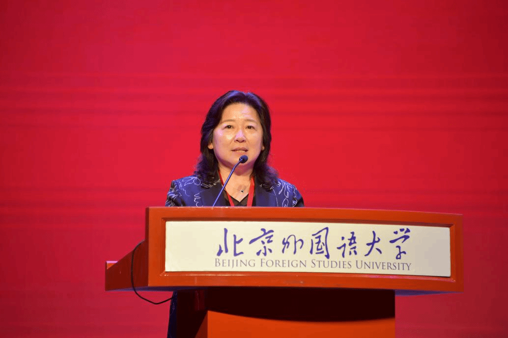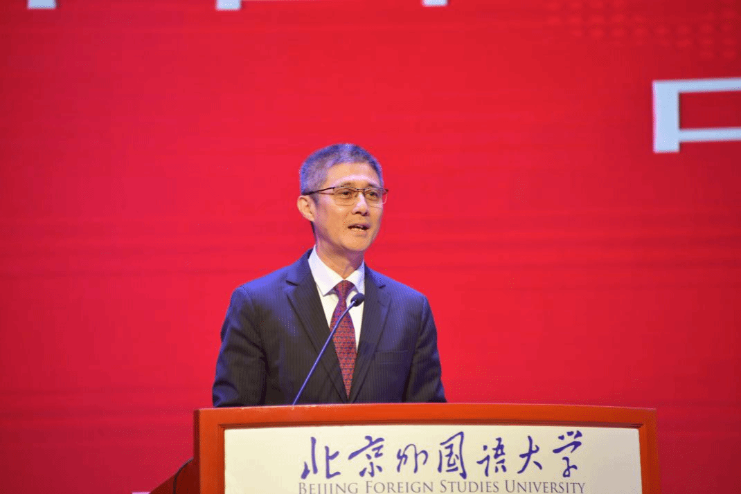 83级校友高岸明致辞,他表示,“兼容并蓄、博学笃行”的校训精神一路引航,让他将外语外宣锚定为终身求索的方向。希望青年学子继承北外光荣的传统和厚重的人文精神,用一代代北外人的理想和追求充实行囊、铸就华章,并对学科发展建设提出建议。