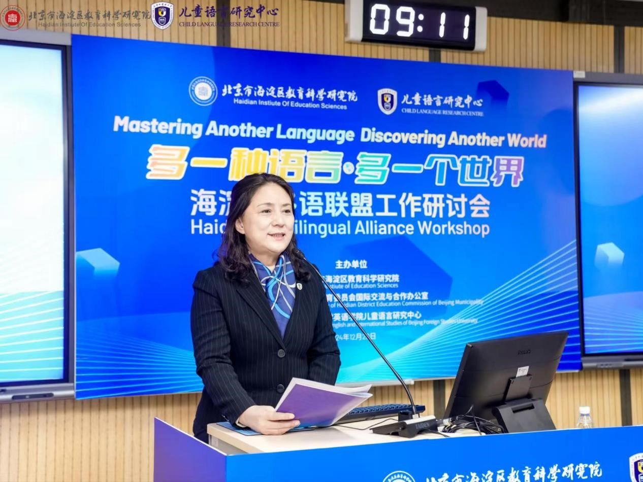 海淀区教育委员会国际办吕娜科长在总结发言中高度肯定了海淀区多语联盟的工作成果,并对未来工作提出新的期望。