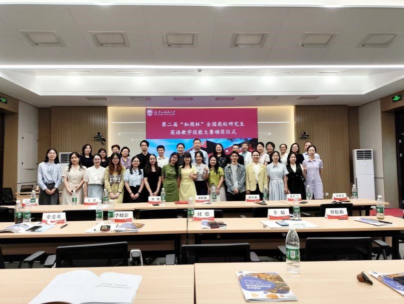 决赛分为两个会场同时进行,选手们齐聚北外,其中1名选手通过线上展示参与比赛。经过课型设计讲解、模拟授课试讲、现场问答与即时备课授课等环节的激烈角逐,2名选手荣获特等奖,4名选手荣获一等奖,4名选手荣获二等奖,6名选手荣获三等奖。各会场评委老师们高度评价了选手们的精彩表现,也指出了选手们在教学设计和教学展示方面可改进之处。