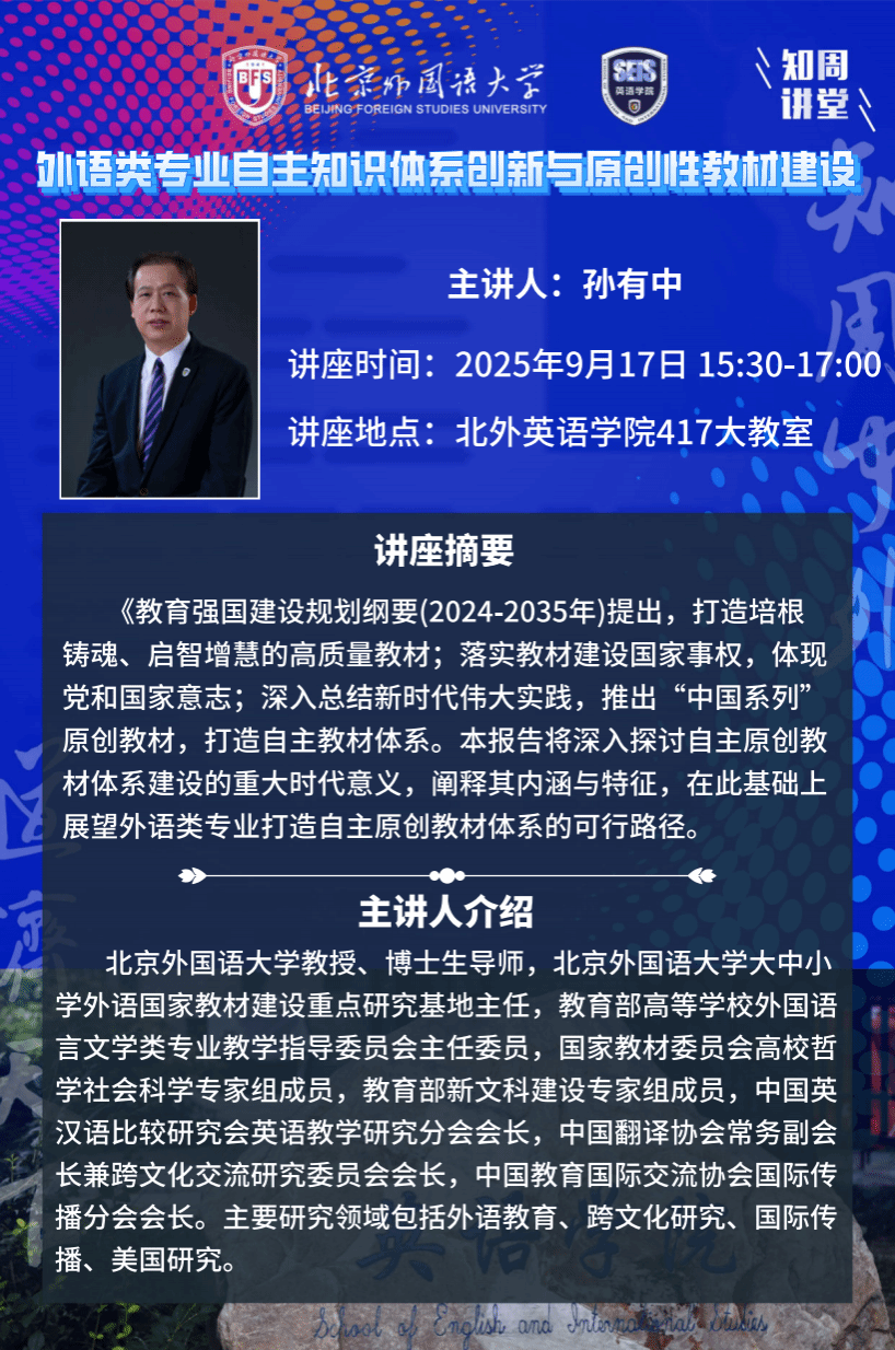 《教育强国建设规划纲要(2024-2035年)提出,打造培根铸魂、启智增慧的高质量教材;落实教材建设国家事权,体现党和国家意志;深入总结新时代伟大实践,推出“中国系列”原创教材,打造自主教材体系。本报告将深入探讨自主原创教材体系建设的重大时代意义,阐释其内涵与特征,在此基础上展望外语类专业打造自主原创教材体系的可行路径。