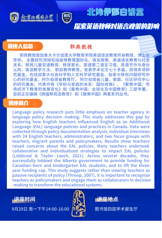 北外大讲堂-北外伊莎白讲堂