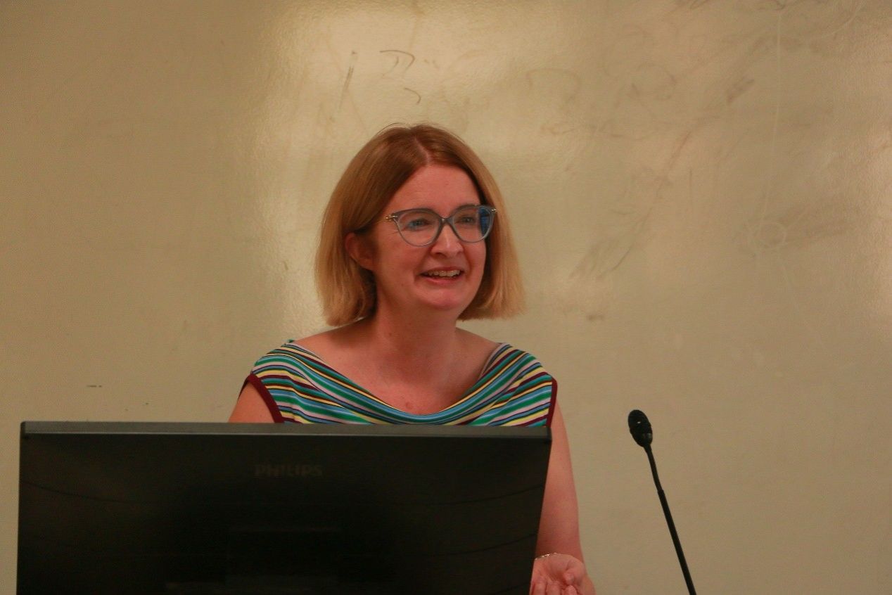 讲座伊始,Sasha Calhoun以经典的“频率编码”(Frequency Code)理论为切入点,系统梳理了音高象征关联的认知基础。她指出,这一理论核心在于“小~高、大~低”的音高对应模式——即人们普遍将高音与“小、细、顺从”等概念关联,将低音与“大、粗、支配”等概念绑定,这一模式也被用于解释语言中权力关系表达、疑问语调标记等普遍现象,为后续探讨音高关联的社会属性奠定了理论框架。