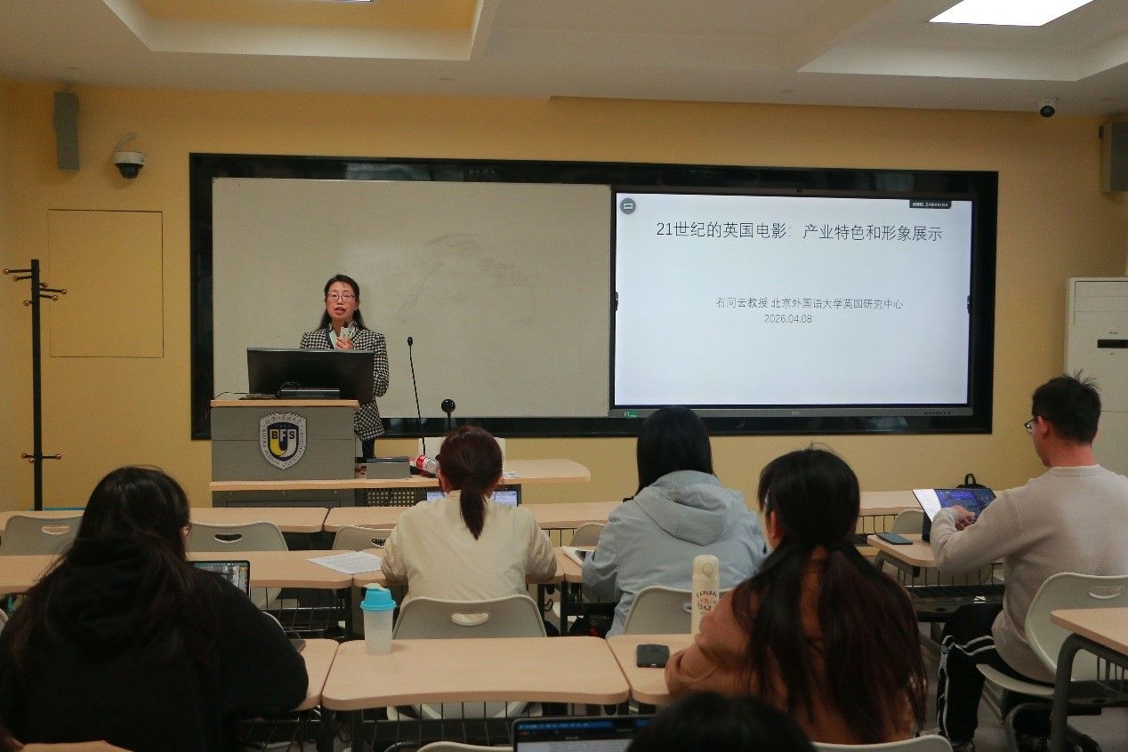 楼417教室顺利举行。英国研究中心石同云教授应邀作题为“21世纪的英国电影:产业特色和形象展示”的学术讲座。本次讲座内容深入、视角多元,吸引了众多师生参与。