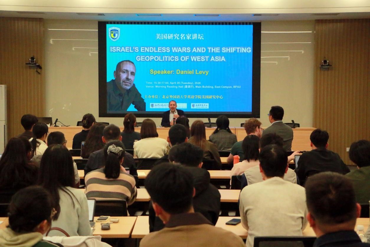 美国研究中心在东院晨读厅举办美国研究名家讲坛,邀请美国中东项目(USMEP)主席丹尼尔·列维(Daniel Levy)做题为“Israel’s Endless Wars And The Shifting Geopolitics Of West Asia”(以色列持续冲突与西亚地缘政治格局的演变)的精彩讲座。