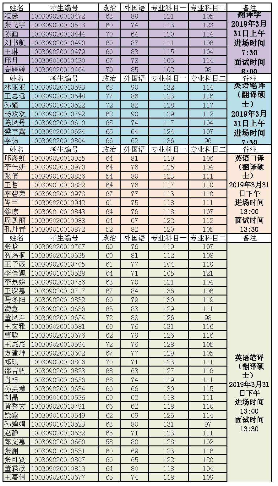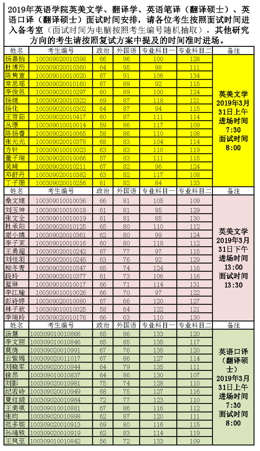 2019年足球比分365 英美文学、翻译学、足球比分365 笔译(翻译硕士)、足球比分365 口译(翻译硕士)面试时间安排