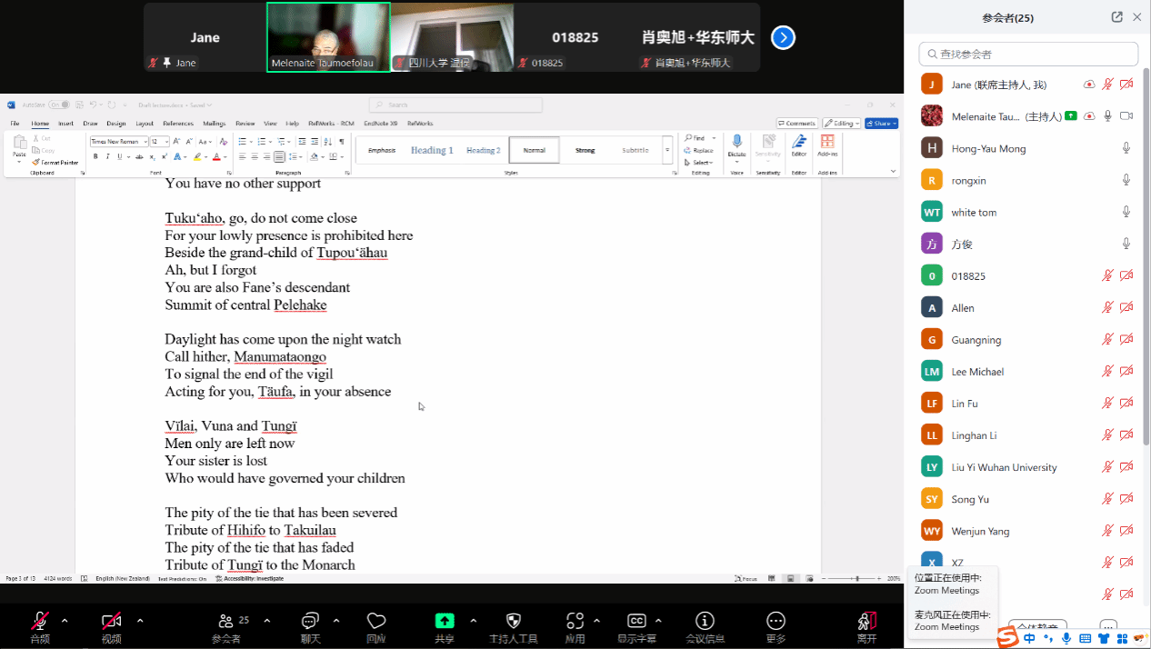 南太平洋研究中心和世界语言博物馆的邀请,汤加语外国专家梅莱奈伊特·塔乌莫艾富拉乌(Melenaite Taumoefolau)博士在线上做了题为“夏洛特女王诗中的汤加文化”(Tongan Culture in Queen Sālote’s Poems)的讲座。讲座由足球比分365