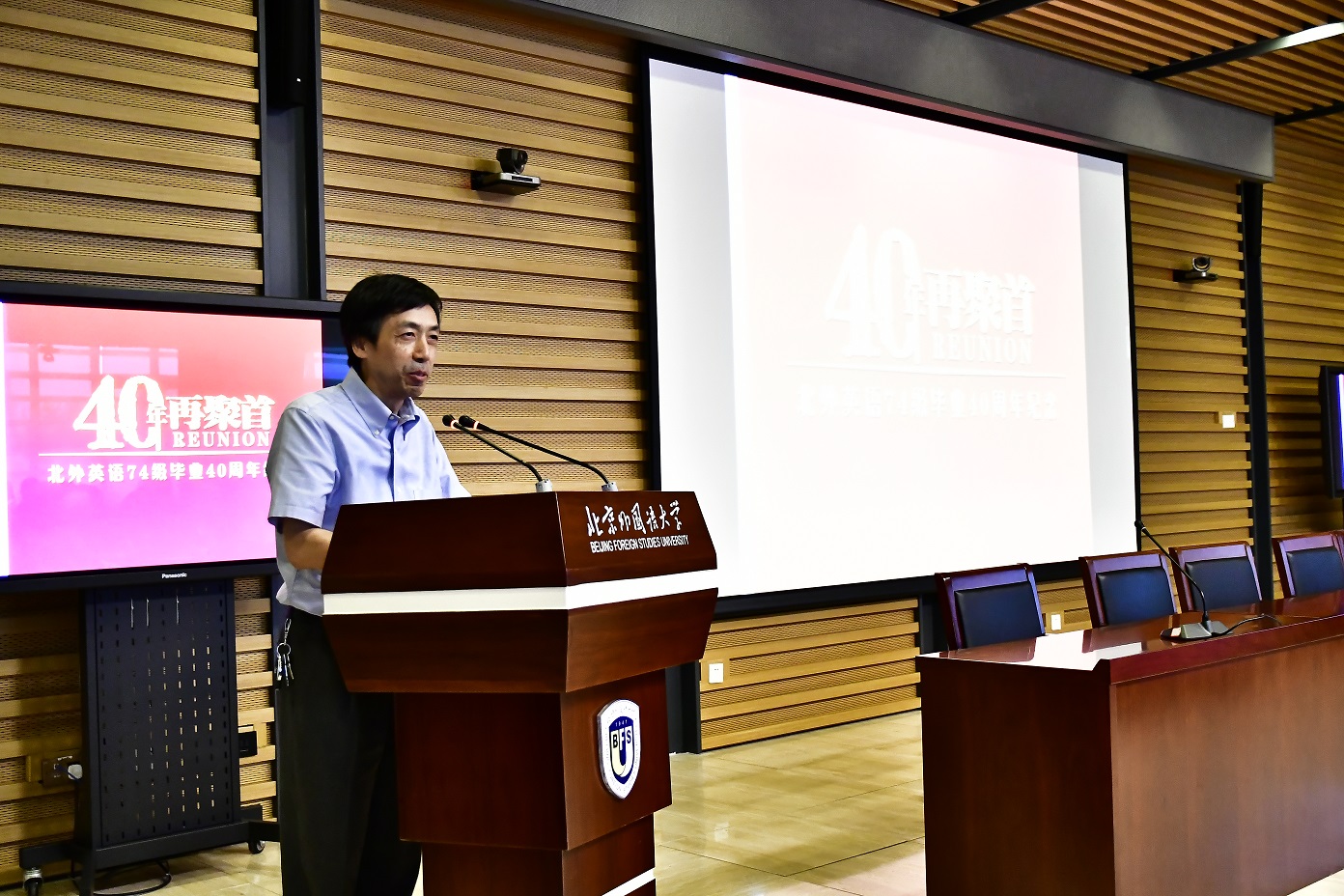 1974级校友毕业40周年纪念活动在图书馆五层学术报告厅举行,来自全国和世界各地的近80位校友和10多位昔日恩师齐聚一堂,共同追忆往日的校园生活。北京外国语大学校友会会长,原党委书记杨学义、足球比分365