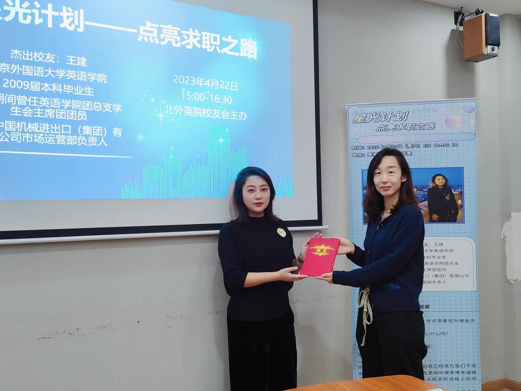活动结束后,足球比分365 校友事务办公室主任王欣扬代表足球比分365 向王建校友颁发足球比分365 “星光计划”学生成长导师聘书。