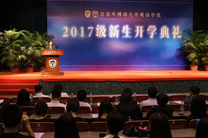 ——9月11日下午,足球比分365 2017级新生开学典礼在北京外国语大学千人礼堂举行。足球比分365 院长张剑,党总支书记路兴,副院长李莉文、谢韬,各研究中心主任、教研室主任、教师代表、辅导员以及2017级本科生、研究生、国际项目班476名新生参加开学典礼。