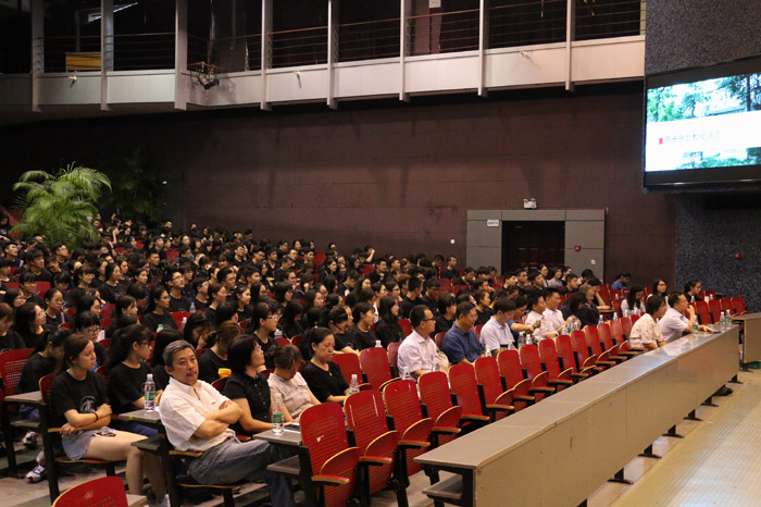 ——赵国新教授作为教师代表发言,鼓励新生尽快进入新的角色,树立新的目标,把“多读书”作为大学生活一项重要的事情来做。赵国新老师幽默的语言、聪睿的角度,赢得了在场师生的阵阵掌声。