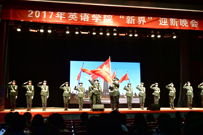 ——首先,国旗班的成员们为我们带来了队列表演《Kaka Kul》,他们迈着整齐的步伐,精神抖擞,英姿飒爽,让我们联想到祖国近年来的蓬勃发展。十八大以来,我们的国家与时俱进,紧跟时代的潮流,迎来日新月异的发展和进步,人民生活富足,国家繁荣稳定。十九大即将开幕,同学们也以此传达自己对国家未来发展的衷心祝福。
