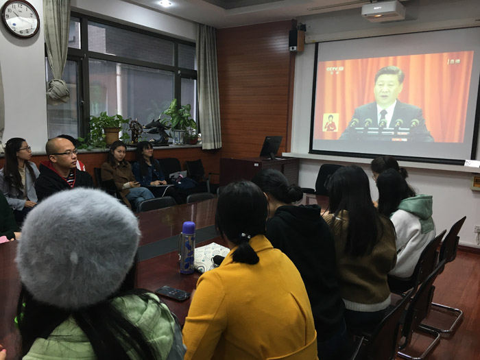 ——报告结束后,现场同学也发交流了各自感想。其中,MTI口译班级雷琪同学表示“党的十九大在万众瞩目中胜利召开,给全国人民打了一剂强心针。改革开放以来,在中国共产党的领导下,我国经济发展实现了质的飞跃,进入了新常态。在经济全球化日益深化的背景下,未来我国的经济发展会面临更多的机遇,有更大的潜力等待挖掘。随着经济的不断增长,人民生活水平也大大提高,目前温饱问题和总体小康的目标都已提前实现,相信共产党建党100年的目标,即建成经济更加发展,民主更加健全,科教更加进步,文化更加繁荣,社会更加和谐,人民生活更加殷实的小康社会的目标在不久的将来也能够达成。”英美文学班级殷旭同学认为,“十九大是全党意志的凝聚、是党心民心的体现,充分反映了全国党员干部群众对以习近平同志为核心的党中央的衷心拥护,对党的十八大以来党中央治国理政卓越能力的高度认可,对继续开创中国特色社会主义伟大事业新局面的热切期盼。习近平同志在党的十九大报告中指出,强调全面建成小康社会,广大青年是生力军和突击队,并且指出坚持把教育摆在优先发展战略地位,‘公平正义’受到前所未有的重视。而‘让发展成果更多更公平惠及全体人民’,成为全面深化改革的重要内容。教育作为‘发展成果’被排在了第一位。”