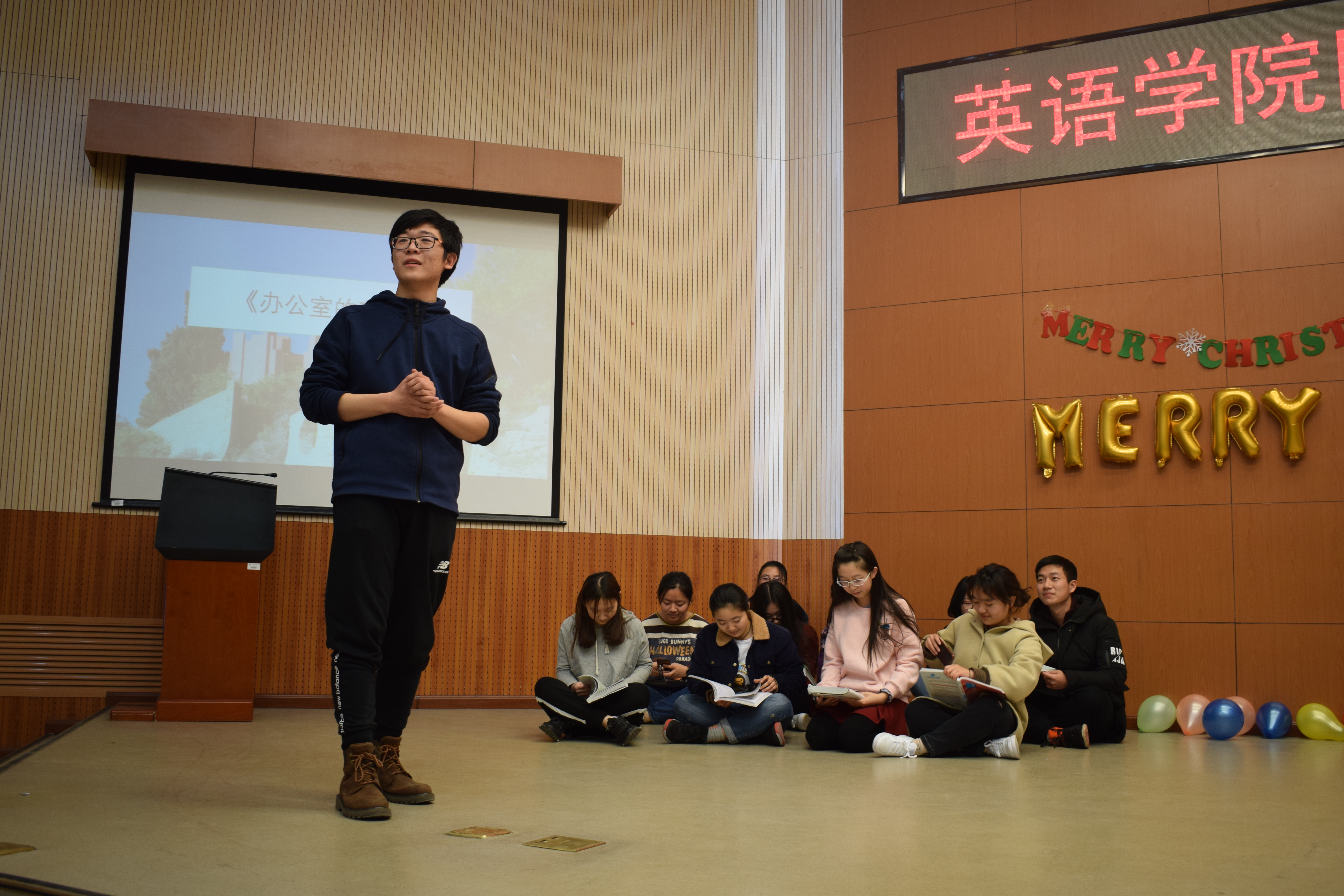 ——现场最能调动气氛的节目当属宣传部精心打造的话剧《王的男人》,以及生活部根据北外英院特色改编的《一起来看流星雨》,令人捧腹的剧情和表演者夸张的诠释为此活动增添了不少笑料。而压轴节目的“115”同样引起阵阵喝彩:团总支副书记张硕吉他弹唱《南方姑娘》,学生会副主席董蒙初带来舞蹈串烧,团学联主席郁凯伦演唱《旅途》。本次联欢会各部门的表演都充分体现了团学联成员非凡的创造力和他们对这个集体的热爱。最后,大家依次抽取礼物,互送祝福,联欢会圆满落幕。