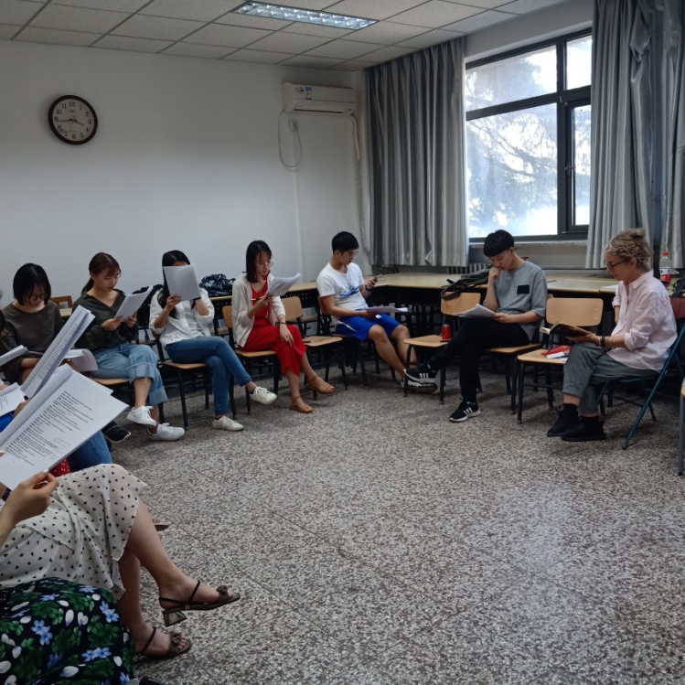 在接下的工作坊活动中,赛芙博士围绕对爱尔兰剧作家玛丽娜·卡尔(Marina Carr 1964-)生平经历与写作环境的介绍,与同学们共同探讨了玛丽娜的著名悲剧作品《猫原边》(By the Bog of Cats)的语言和主题,还在领读剧本的环节让大家领略了爱尔兰口音可为该剧表演增添的音韵之美。