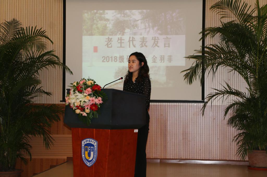 接着,教师代表张莲老师以“大学教育的目的”为主题,为同学们抽丝剥茧分析当代教育目标的同时留下发人深思的问题。她鼓励新生们找到并确立自己的发展目标,抓住时代给予的机会,努力挖掘自己的潜力,利用宝贵的四年为“教育是为了什么?”这一问题交上令自己满意的答卷。