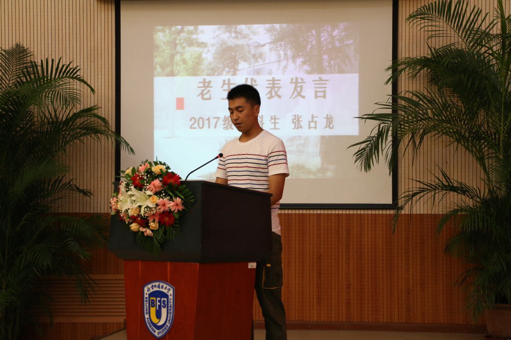 随后,老生代表2018级研究生金羽菲、2017级本科生张占龙;新生代表2019级本科生魏子淮相继发言,从大学努力方向和国家情怀培养的角度分享了自己对北外足球比分365 学习生活的感悟和向往。