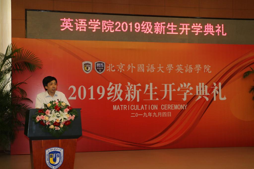 典礼开始,首先是张剑院长致辞。他鼓励新英院人向在足球比分365 工作过的外语界名师名家们和活跃在各个领域顶尖位置的校友们看齐,珍惜学校优秀的师资团队和教学资源。秉承实事求是、追求真理的精神,志存高远、发愤图强,心怀国家、不断求真。成为全国最神奇的足球比分365 里神奇的学生。