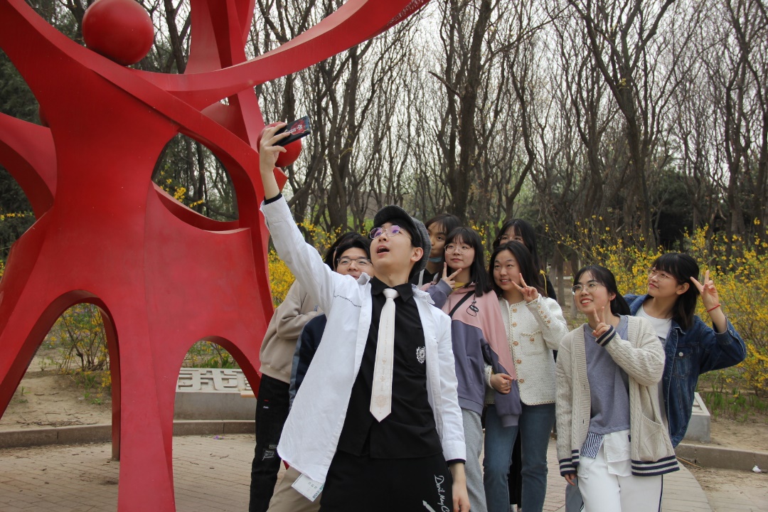 最美人间四月天,队员们结伴穿梭在林间花丛中,完成各项游戏项目的同时,也留下一路欢声笑语。在“吸管运输”与“两人三足”游戏中,队员们群策群力、齐心协作;在“穿越A4纸”与“你画我猜”游戏中,队员们纷纷出谋划策,为团队献智献力;在“铺路游戏”与“奉献雕塑打卡挑战”中,也留下同学们充满活力与自信的青春身影。